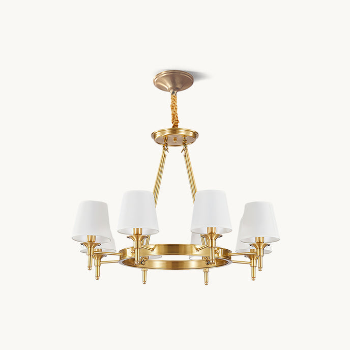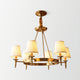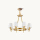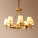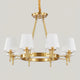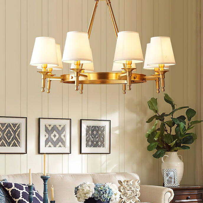 Light up your dining table with our Postmodern Round Chandelier. Made from premium linen, it provides soft light without any harsh glare. Its modern wheel design with brass finish adds a touch of elegance to any space. This chandelier is the perfect blend of style and functionality.