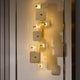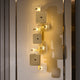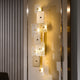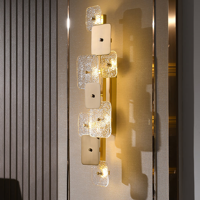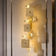 Esta lâmpada de parede é feita de material de cobre e materiais de vidro. O candeeiro de parede criativo tem uma fonte de luz LED integrada. Esta luminária de parede é adequada para sala de estar, quarto, sala de jantar, cabeceira, corredor, corredor, escritório, entrada e muito mais.