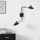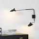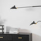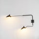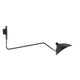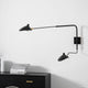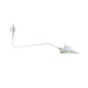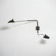 A arandela Two Arm Wall de Serge Mouille apresenta um destaque visual marcante por meio de sua silhueta expressiva. Parte da linha de peças inspiradas em insetos de Mouille da década de 1950, este acessório esguio foi uma resposta aos designs italianos mais volumosos da época, criados intencionalmente como arte altamente funcional e sofisticada. Dois braços finos de alumínio se estendem graciosamente de uma placa de montagem compartilhada, com persianas artisticamente moldadas em suas extremidades que podem ser ajustadas por juntas esféricas de latão. Seus braços giram de forma independente, criando o ambiente desejado e adicionando drama visual.
