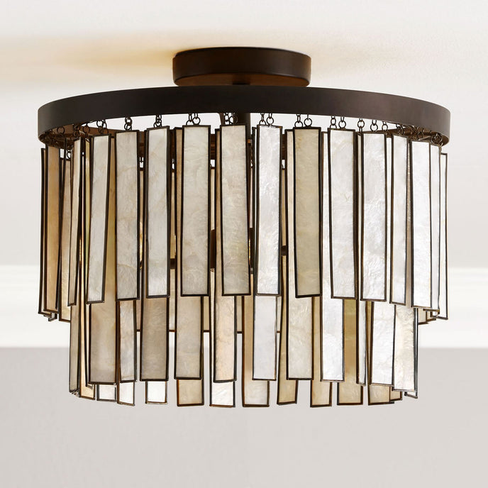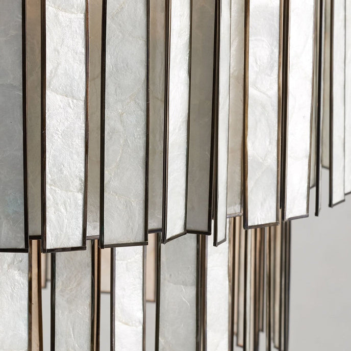 The Sheila Shell Ceiling Lamp by Mooijane features handcrafted shell slices arranged in layered tiers for a look that feels airy, elegant, and refined. Their natural iridescence softly diffuses light, bringing warmth and coastal sophistication to bedrooms, breakfast nooks, and beautifully styled living spaces.