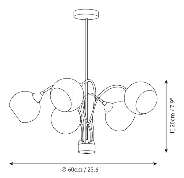 Comprimento da haste de suspensão Max 50cm / 19,7 polegadas. O comprimento da haste de suspensão pode ser variado mediante solicitação. (Fale conosco).